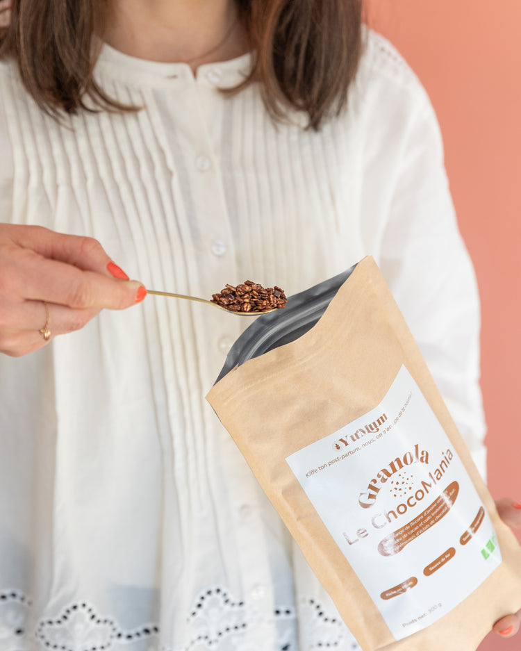 Notre granola peut être grignoté seul ou mélanger avec une boisson végétale, du lait, un yaourt ou du fromage blanc et des fruits de saison.