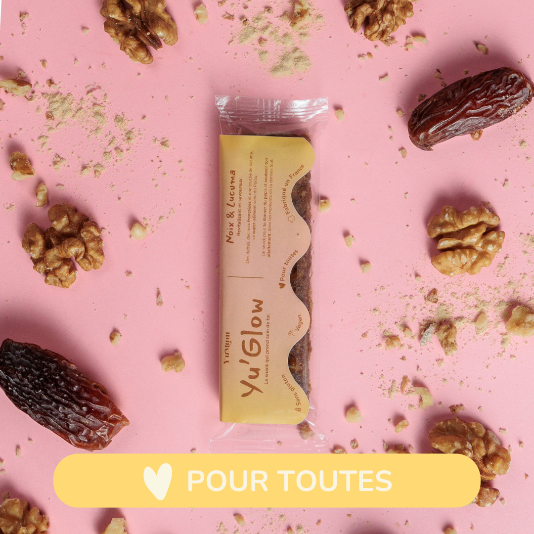 Le pack Yu’Glow – Trio Découverte réunit nos 3 barres énergétiques à base de pâte de dattes, pensées pour les (futures) mamans, parfaites faire une pause nourrissante & gourmande.