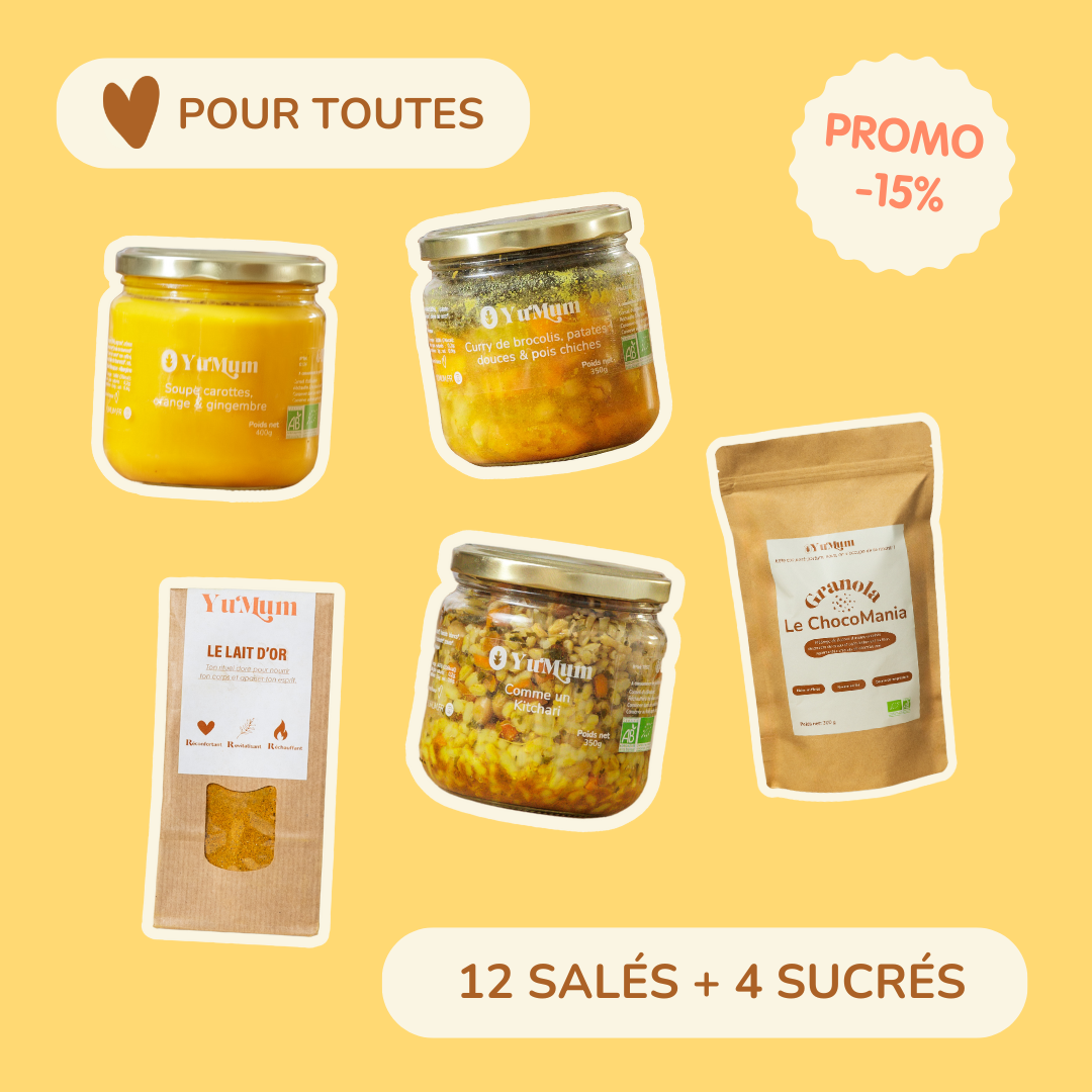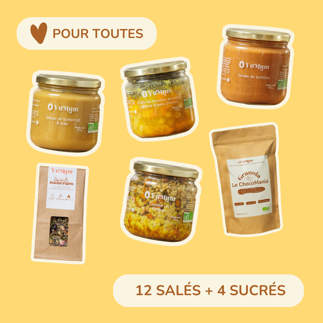 Le pack parfait pour allier gourmandise, équilibre et praticité pendant ton post-partum.