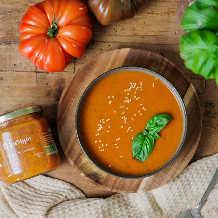Une soupe légère et rafraîchissante où l'acidité des tomates se mêle à la douceur des pois chiches. Relevée par une note d'estragon, elle offre un équilibre savoureux entre fraîcheur et richesse. Sans gluten et sans PLV, elle est idéale pour une pause gourmande et pleine de légèreté.