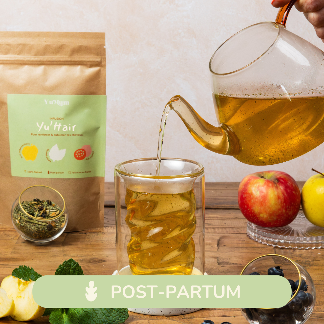 Prends soin de ta chevelure de l’intérieur avec Yu'Hair, une infusion aux plantes reminéralisantes qui stimule la pousse et renforce les cheveux.